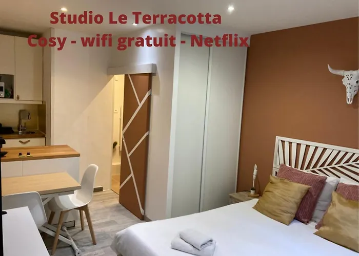 A 20 m^2-es Studio Le Terracotta - Topbnb Dijon Apartman Dijon Dijon belvárosa körzetében található, 20 perc autóútra a Longvic repülőtértől. Az 1 hálószobás apartman körülbelül 10 percnyi sétára található a Dijon vasútállomástól és 200 méterre a Hopital buszpályaudvartól.